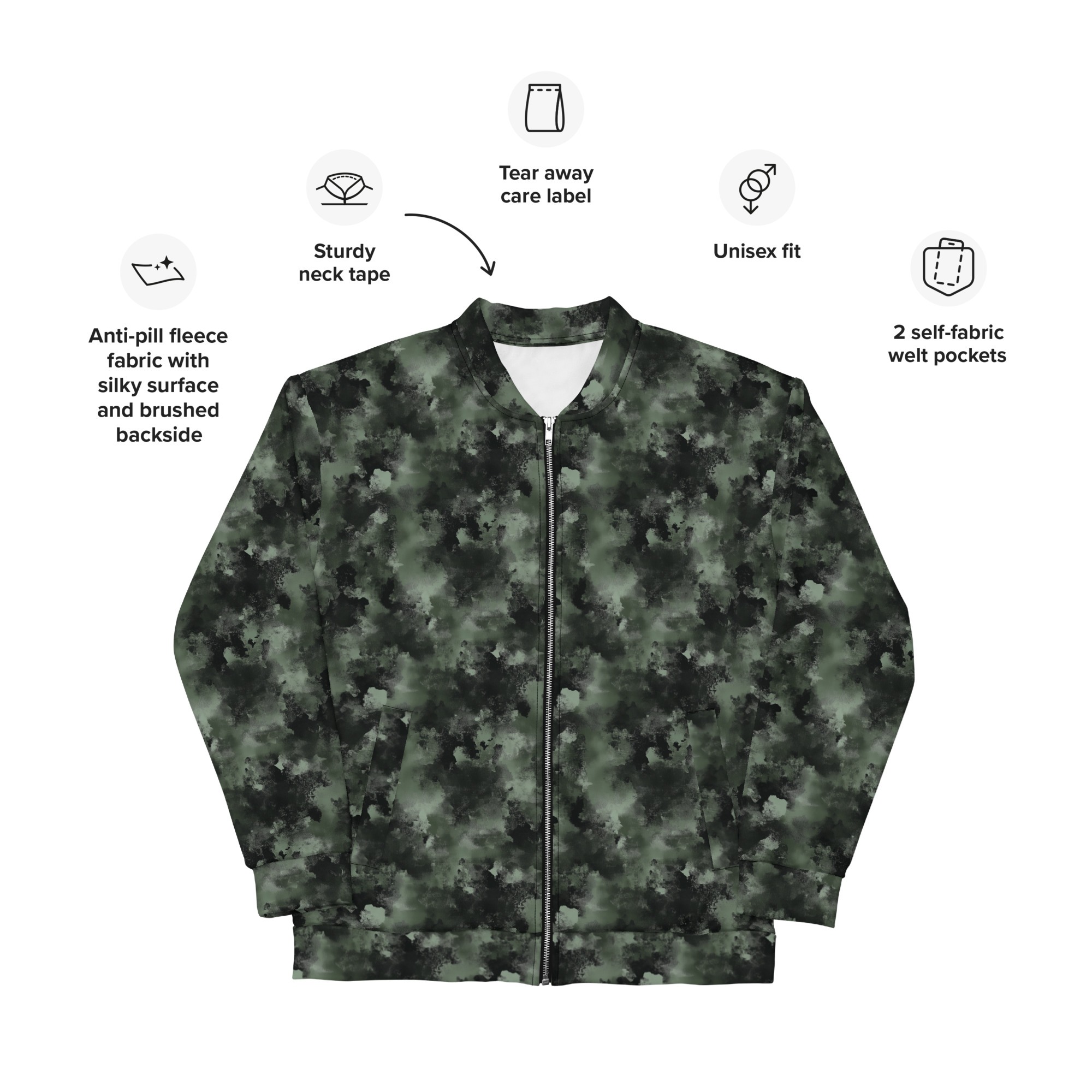 Diese Bomberjacke peppt einfach jedes Outfit auf. Egal, ob man sie zusammen mit einem normalen T-Shirt oder über einem warmen Kapuzenpullover trägt, sie sieht einfach immer gut aus. Mit Fleece-Innenseite und einer lockeren Unisex-Passform ist diese Unisex Bomberjacke ein Must-Have in jedem Kleiderschrank!